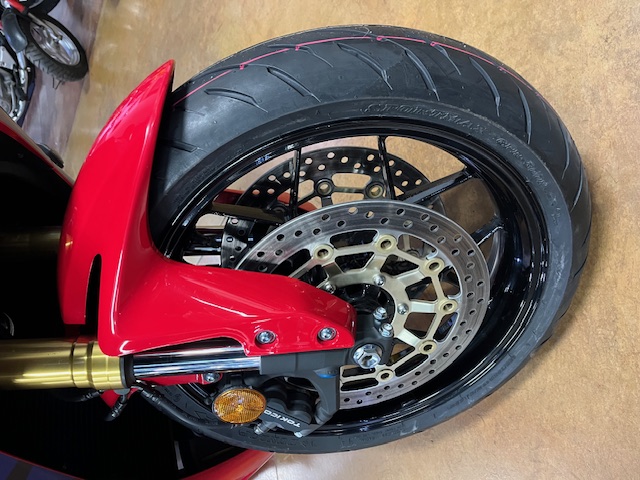 With their consistent rigidity and balance, these sharp-looking 12-spoke cast aluminum wheels work with the fork and enhance suspension feedback to deliver real handling improvements.